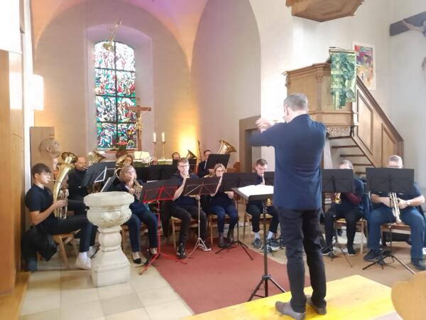 Mit festlichem Klang feierte der Posaunenchor Gründelhardt am 19. Oktober 2025 sein 65-jähriges Bestehen. Im Festgottesdienst in der gut gefüllten Gründelhardter Kirche erklangen alte und neue Stücke, kräftig und lebendig vorgetragen von den Bläserinnen und Bläsern – diesmal in ihren neuen T-Shirts mit dem frischen Logo des Chors.