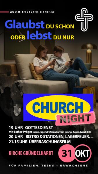 Herzliche Einladung zur Church Night am 31. Oktober mit Jugendreferentin Esther Pröger in der Laurentiuskirche Gründelhardt!