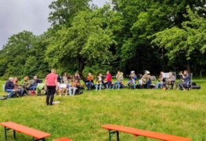 Viele Besucherinnen und Besucher sind der Einladung gefolgt und haben sich auf den Bänken und Stühlen und eigens mitgebrachten Decken niedergelassen.