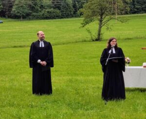 Pfarrerin Dinkel und Pfarrer Hammer führten zusammen durch den Gottesdienst.