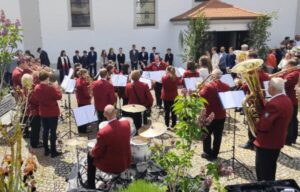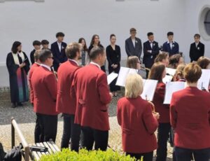 Nach Abschluss des Gottesdienstes wurden die Konfirmierten samt ihren Gästen draußen vor der Kirche vom Musikverein Rosenberg musikalisch in Empfang genommen.