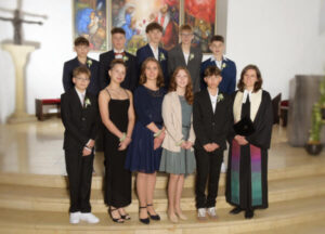 In der vollbesetzen katholischen Kirche in Rosenberg feierten am vergangenen Sonntag zehn Jugendliche der Kirchengemeinde Hummelsweiler ihre Konfirmation. Der Festgottesdienst nahm dabei die diesjährige Jahreslosung „Prüft alles und behaltet das Gute“ (1. Thessalonicher 5,21) in den Blick.